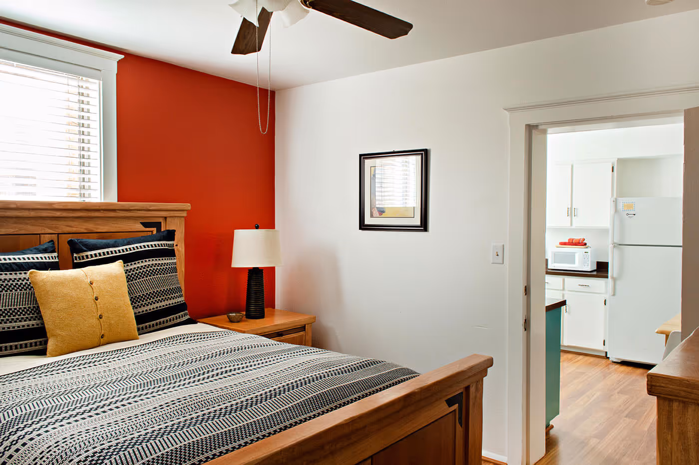 Slip into your soft, cotton sateen sheets to rest up for tomorrow's adventures. Located in the back of the building, your bedroom is insulated from the sounds of merriment in the Gulch. But use the sound machine on your bedside table to turn your bedroom into a virtual haven for sleep.