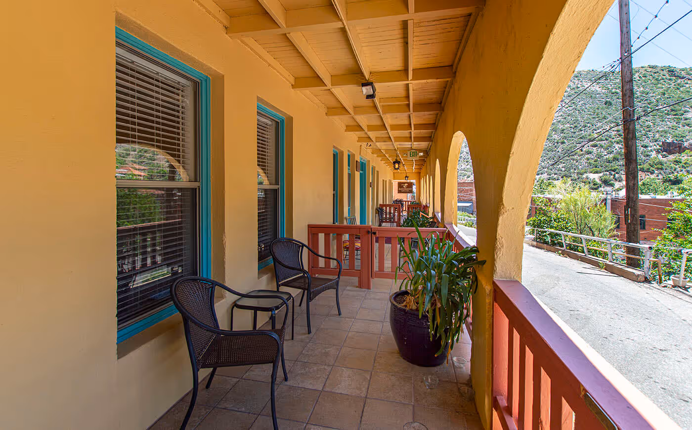 Overlooking Bisbee, your veranda is the perfect spot to start your day with a hot cup of locally brewed coffee or end the day with a glass of wine, watching the sun fall behind the Mule Mountains.