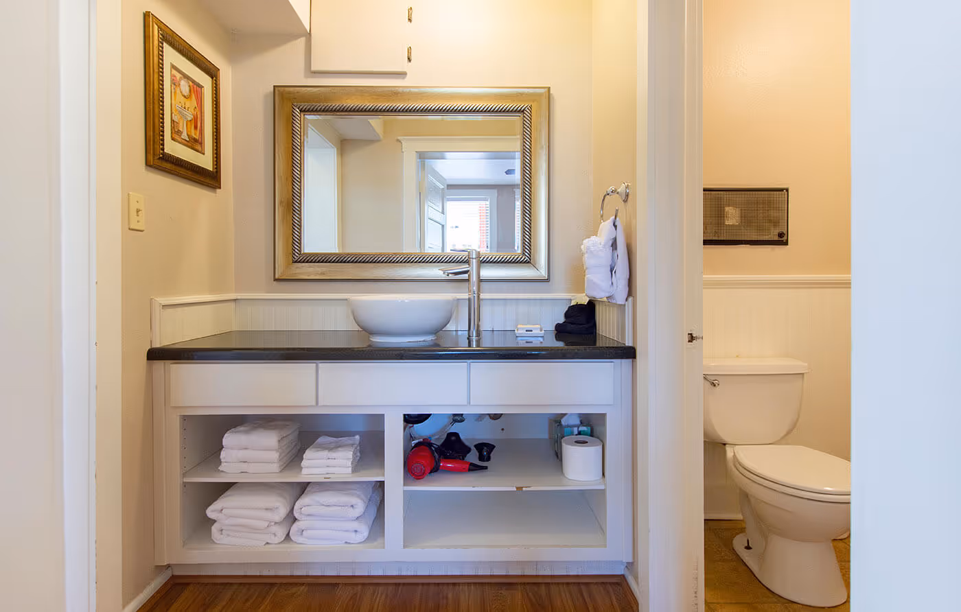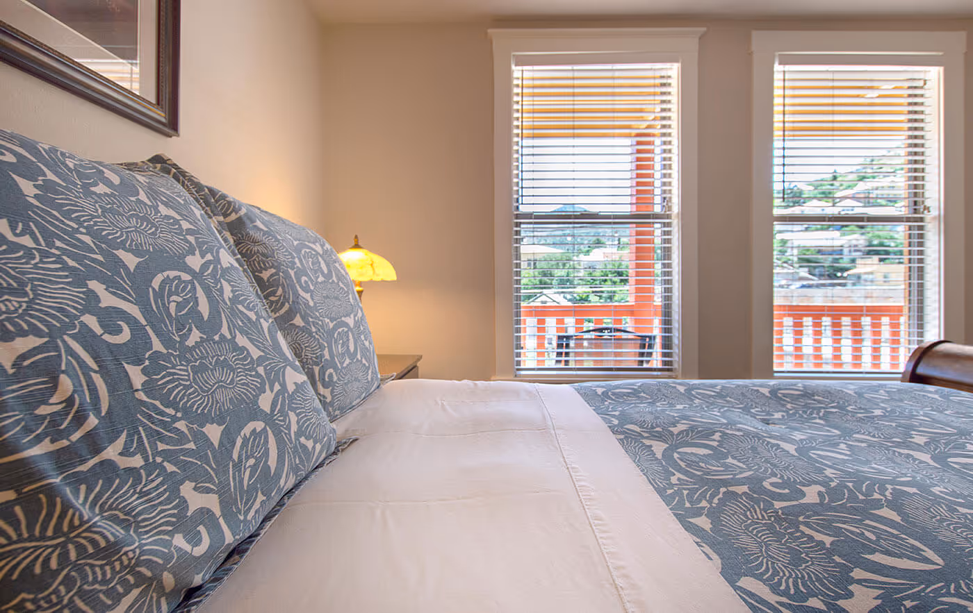 Slip into your soft, cotton sateen sheets to rest up for tomorrow's adventures. Located in the back of the building, your bedroom is insulated from the sounds of merriment in the Gulch. But use the sound machine on your bedside table to turn your bedroom into a virtual haven for sleep.